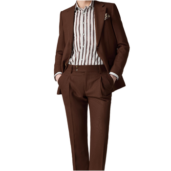 Chinesische Lieferanten Produktion Woll anzug Stoff Maßge schneiderte braune Mode Anzug Fitted Man Solid Suit