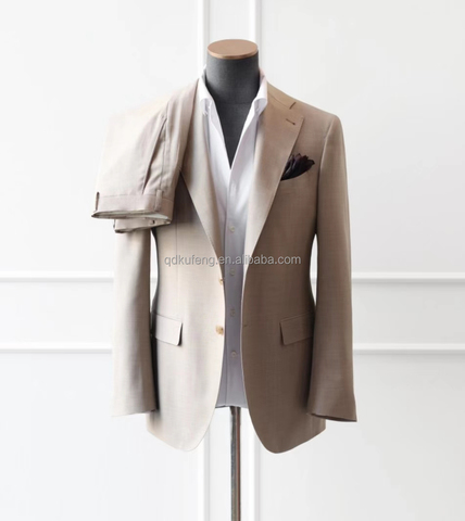Trajes completos de lona de 2 piezas personalizados a medida para hombre, trajes de tela de lana caqui para hombre, blazer y trajes de pantalón para hombre