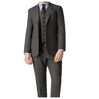 Chinese Leveranciers Productie Wollen Pak Stof Op Maat Gemaakt Bruin Modepak Getailleerd Man Effen Pak